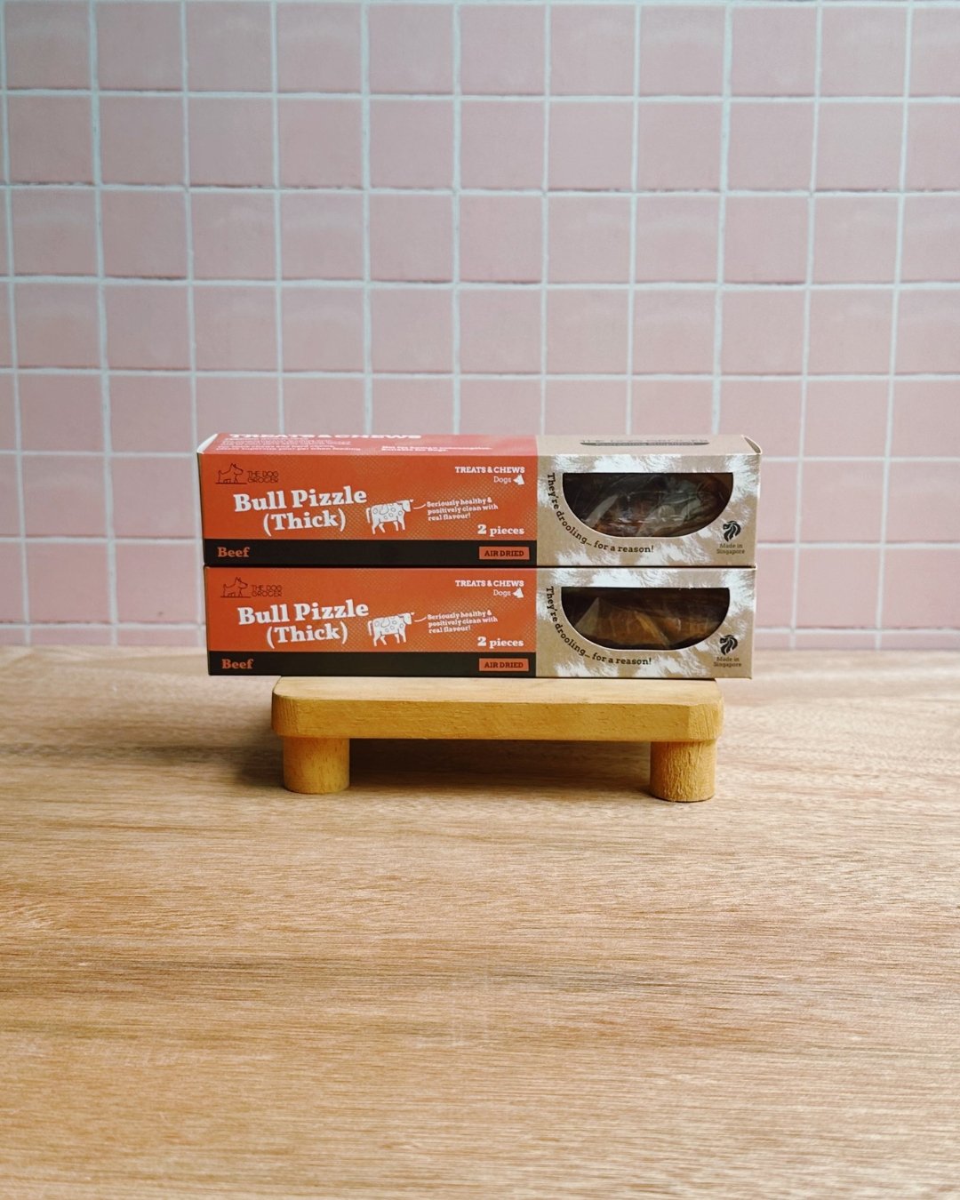 Bull pizzles are sanitised with ozone to reduce strong smells and bacteria (if any) before processing. The cleaned and dehydrated pizzle makes a tough but 100% digestible bully stick, great for engagement and teeth cleaning.